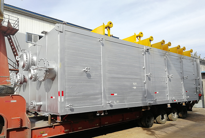 2】、降溫幅度最大【進(jìn)料溫度約750℃,出料溫度約150℃,冷卻物料溫差約600℃】、設(shè)備重量最重【設(shè)備凈重約70噸,運(yùn)行重量約160噸】、設(shè)備體積最大【長(zhǎng)×寬×高≈4.8米×2.8米×11米】的立式水循環(huán)冷卻設(shè)備。